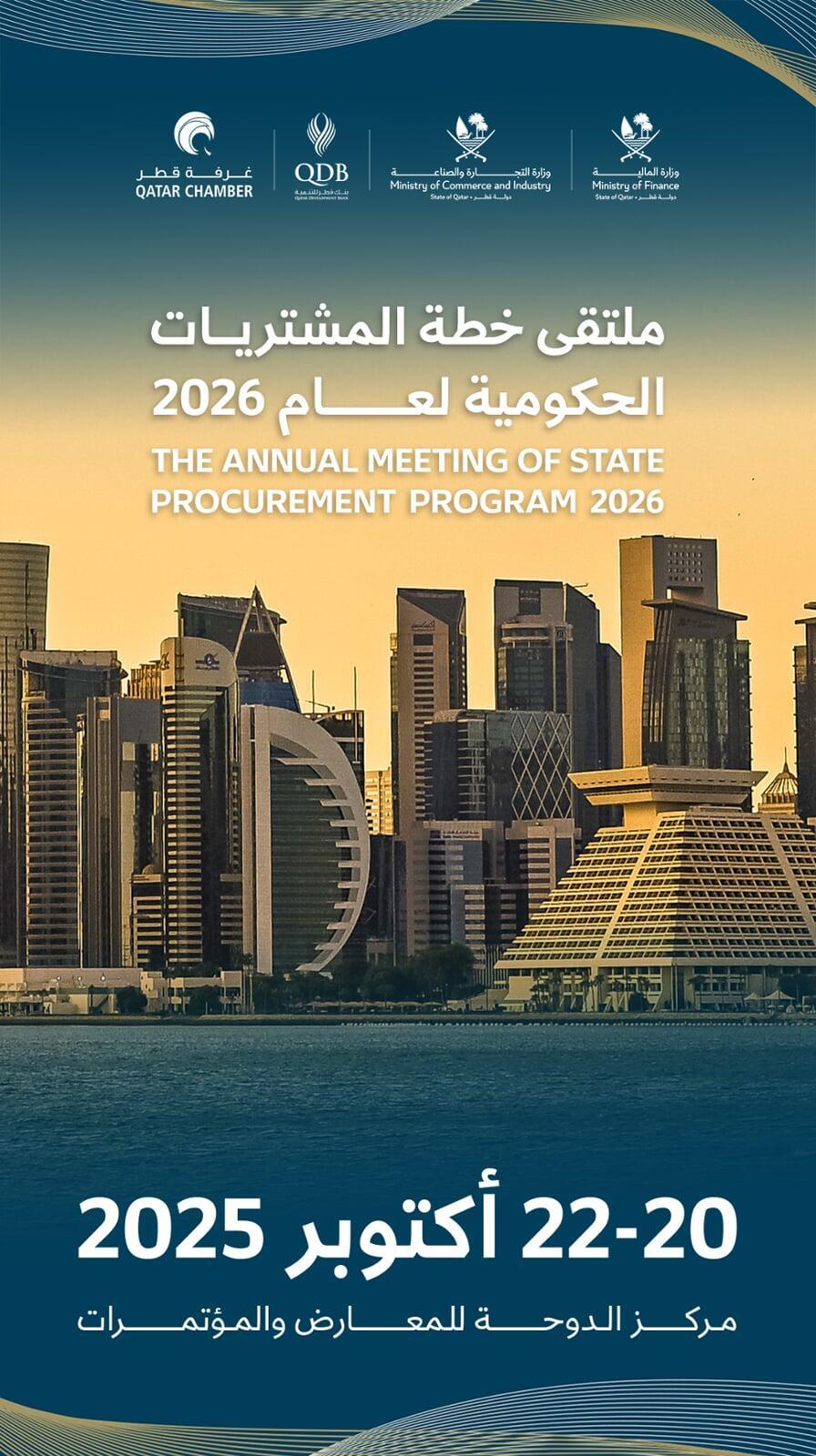 The Annual Meeting of the State Procurement Program 2026 is a strategic platform organized by the Ministry of Finance, in collaboration with the Ministry of Commerce and Industry, Qatar Development Bank, and Qatar Chamber