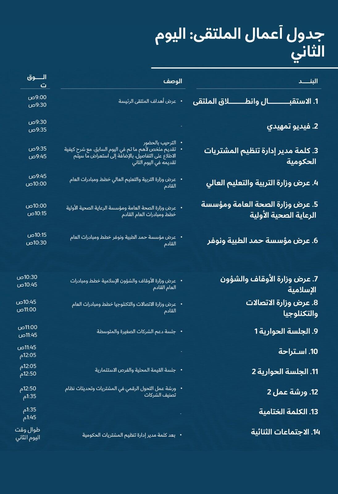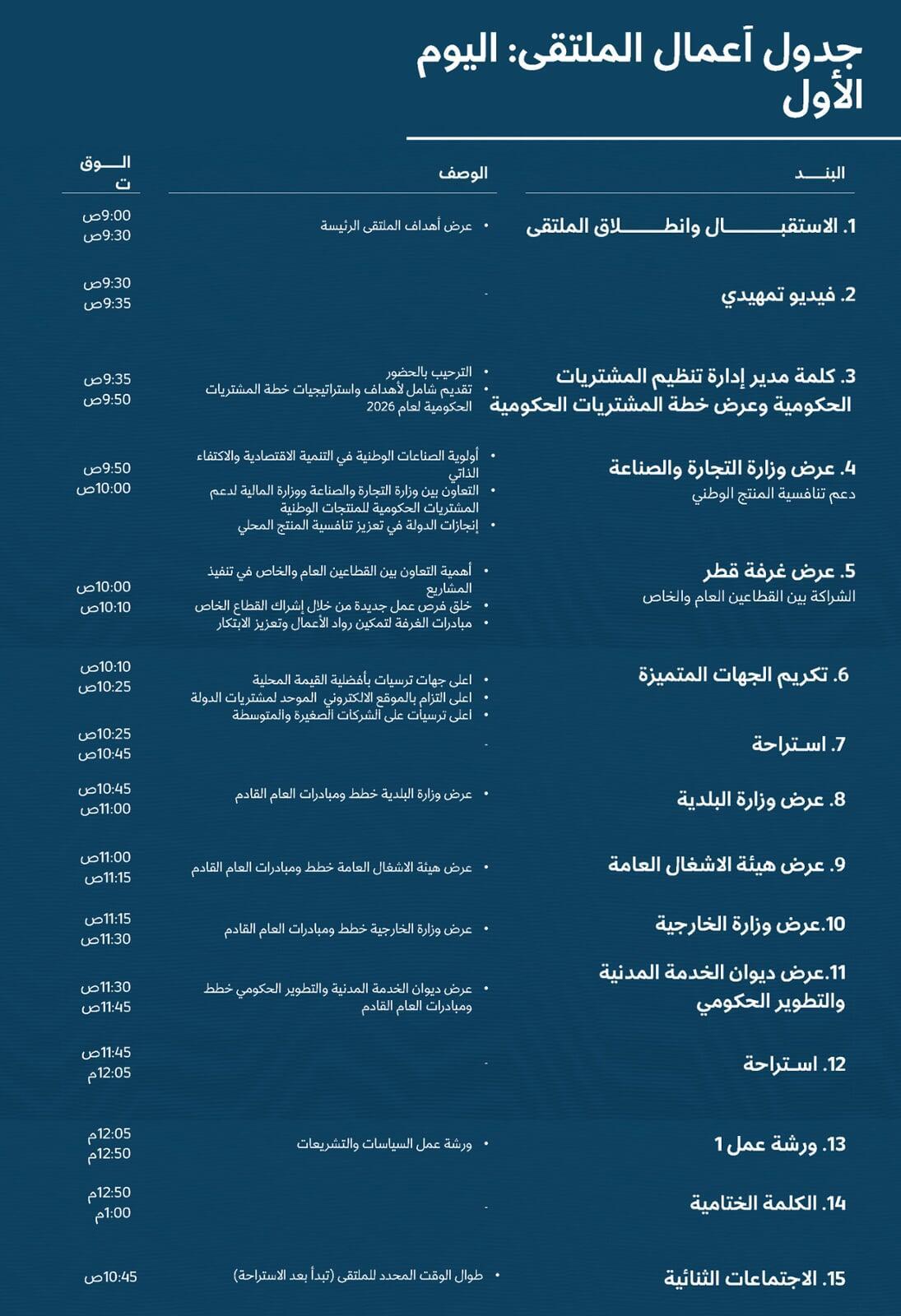 يوفر الملتقى فرصة متميزة للشركات ورواد الأعمال للتعرف على خطط المشتريات الحكومية، والاستفادة من فرص الشراكة والتوسع في السوق المحلي، بما يعزز من استدامة الاقتصاد الوطني ويدعم مسيرة التنمية الشاملة.