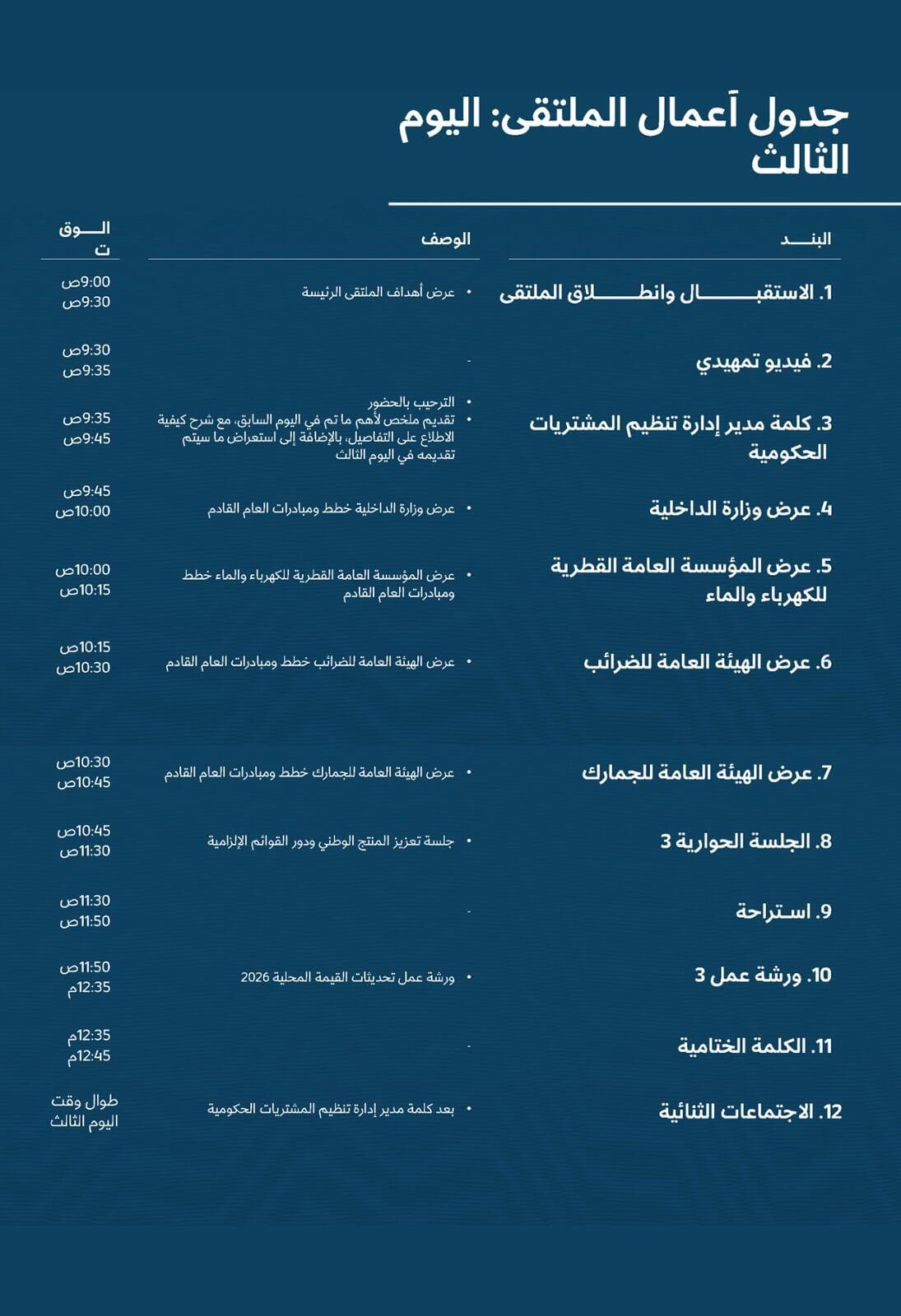 يُعد ملتقى خطة المشتريات الحكومية منصة استراتيجية تنظمها وزارة المالية، بالتعاون مع وزارة التجارة والصناعة، وبنك قطر للتنمية، وغرفة قطر.